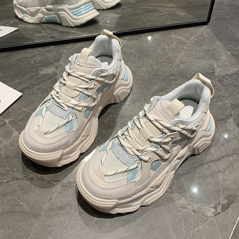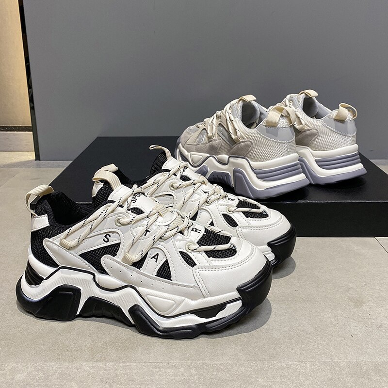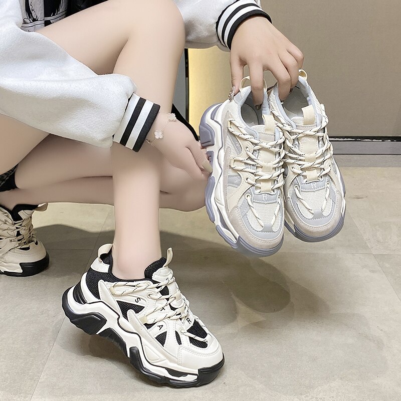2022 New Spring Chunky Sneakers for Female Couple Shoes Woman Mesh Platform Vulcanize Shoes Casual Beige Dad Shoes Plus Size 44