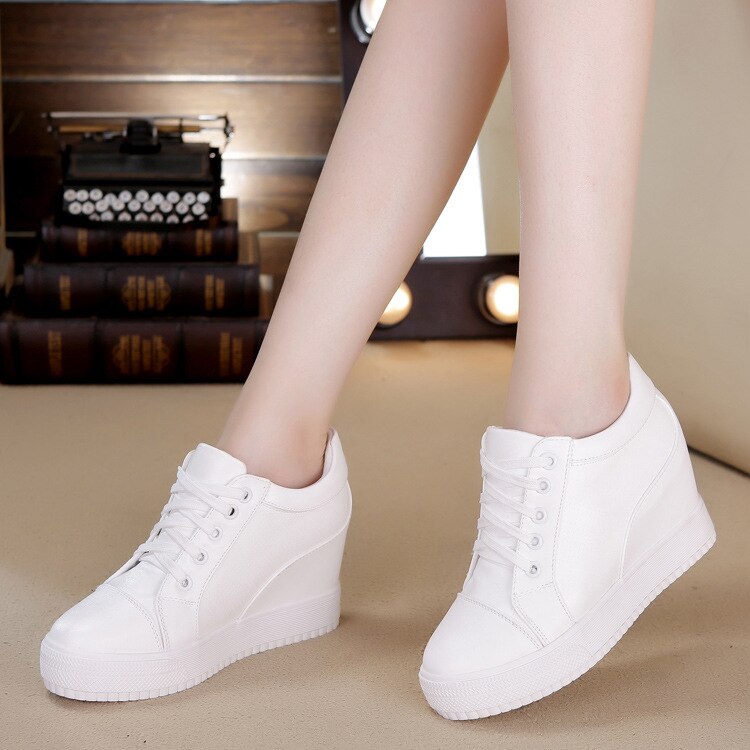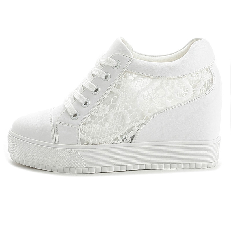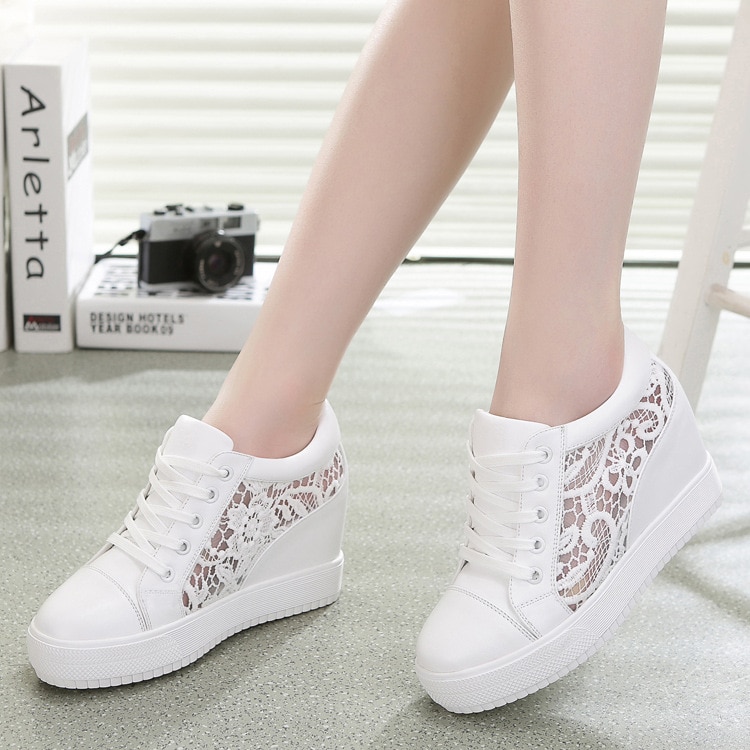 Spring Summer Sneakers Women Shoes Cutout Lace White Shoes Casual Canvas Shoes Inner Elevated Shoes Platform Tenis Feminino